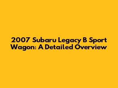 2007 Subaru Legacy B Sport Wagon: A Detailed Overview