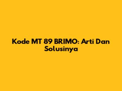 Kode MT 89 BRIMO: Arti Dan Solusinya