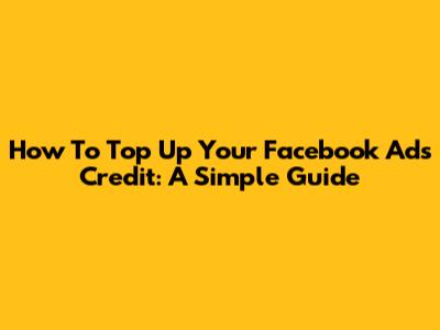 How To Top Up Your Facebook Ads Credit: A Simple Guide