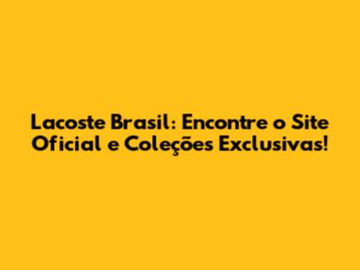 Hey guys! Are you looking for the official Lacoste site in Brazil? You've come to the right place! Lacoste, the brand synonymous with elegance, sport, and that iconic crocodile logo, has a strong presence in Brazil. Finding the official source ensures you're getting authentic products, exclusive collections, and the real Lacoste experience. Let's dive into how you can find the official Lacoste Brazil site and what you can expect when you get there. Let's explore the world of Lacoste in Brazil and uncover the treasures waiting for you. Whether you're a long-time fan or new to the brand, understanding how to access the official site and its offerings can significantly enhance your shopping experience. The official Lacoste Brazil site isn't just a place to buy clothes; it's a gateway to a lifestyle. You can immerse yourself in the brand's history, explore its commitment to quality, and stay updated on the latest trends and collaborations. Plus, buying directly from the official site guarantees that you're getting authentic products, free from counterfeits or imitations. This peace of mind is invaluable, especially when investing in high-quality pieces that are designed to last. Shopping on the official site also gives you access to exclusive collections and limited-edition items that you won't find anywhere else. These unique offerings can help you express your individual style and stand out from the crowd. And with convenient online shopping and reliable delivery services, it's easier than ever to get your favorite Lacoste pieces delivered straight to your doorstep. So why settle for anything less than the best? Discover the official Lacoste Brazil site today and experience the ultimate in style, quality, and authenticity. You won't be disappointed!