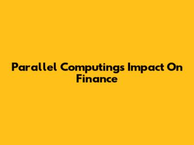 Parallel Computing's Impact On Finance