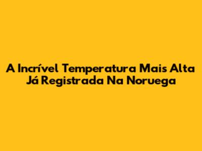 A Incrível Temperatura Mais Alta Já Registrada Na Noruega