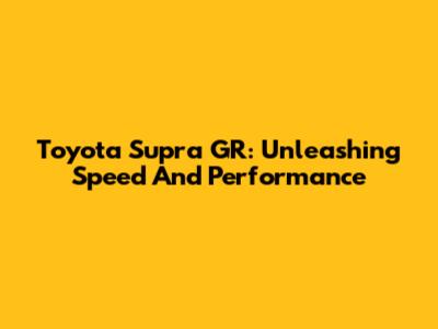 Toyota Supra GR: Unleashing Speed And Performance
