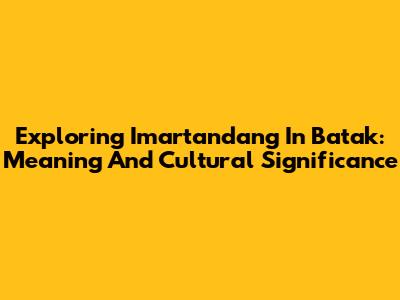 Exploring 'Imartandang' In Batak: Meaning And Cultural Significance