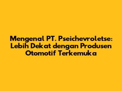 PT. Pseichevroletse adalah salah satu pemain utama dalam industri otomotif Indonesia. Perusahaan ini dikenal sebagai produsen dan distributor kendaraan bermotor, khususnya mobil. Mereka memiliki peran penting dalam menyediakan berbagai pilihan kendaraan bagi masyarakat Indonesia, mulai dari mobil keluarga hingga kendaraan komersial. Kehadiran mereka telah memberikan dampak signifikan terhadap perkembangan industri otomotif di Indonesia, menciptakan lapangan kerja, dan mendorong pertumbuhan ekonomi.
