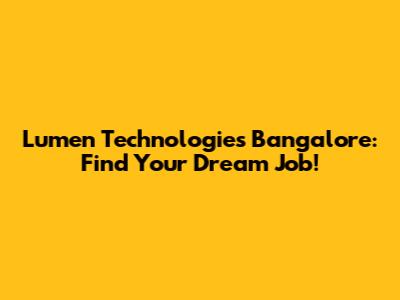 Lumen Technologies Bangalore: Find Your Dream Job!