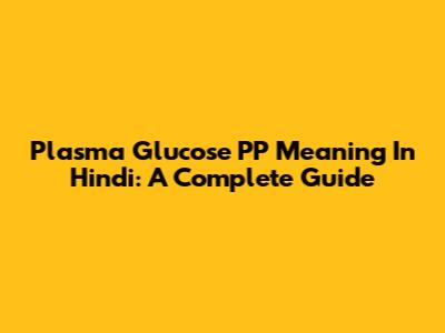 Plasma Glucose PP Meaning In Hindi: A Complete Guide
