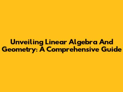 Unveiling Linear Algebra And Geometry: A Comprehensive Guide