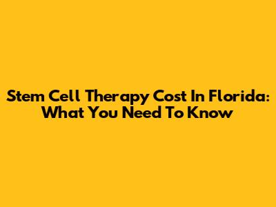 Stem Cell Therapy Cost In Florida: What You Need To Know