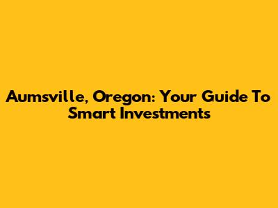 Aumsville, Oregon: Your Guide To Smart Investments