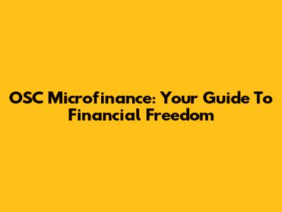 OSC Microfinance: Your Guide To Financial Freedom