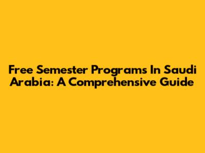 Free Semester Programs In Saudi Arabia: A Comprehensive Guide