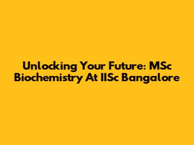 Unlocking Your Future: MSc Biochemistry At IISc Bangalore