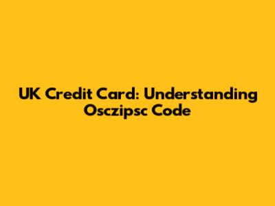 UK Credit Card: Understanding Osczipsc Code