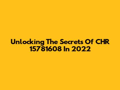 Unlocking The Secrets Of CHR 15781608 In 2022