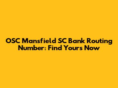 OSC Mansfield SC Bank Routing Number: Find Yours Now