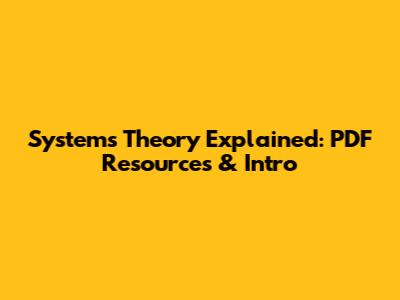 Systems Theory Explained: PDF Resources & Intro