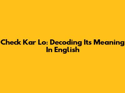 Check Kar Lo: Decoding Its Meaning In English