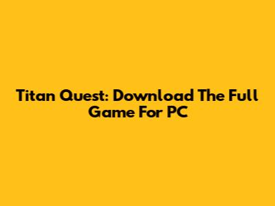Titan Quest: Download The Full Game For PC