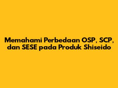 Bingung dengan istilah OSP, SCP, dan SESE yang sering muncul pada produk Shiseido? Tenang, guys! Artikel ini akan mengupas tuntas perbedaan ketiganya, sehingga kamu bisa memilih produk Shiseido yang paling sesuai dengan kebutuhan kulitmu.