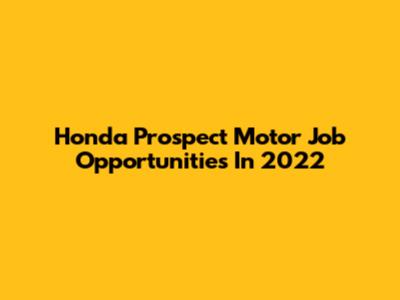 Honda Prospect Motor Job Opportunities In 2022