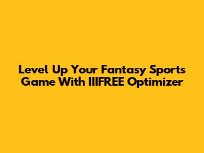 Level Up Your Fantasy Sports Game With IIIFREE Optimizer