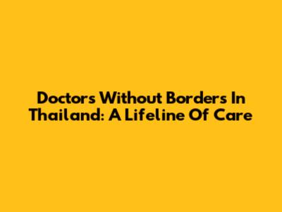 Doctors Without Borders In Thailand: A Lifeline Of Care