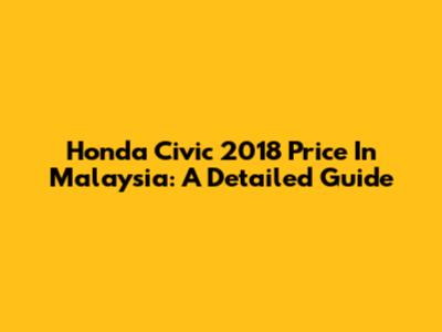Honda Civic 2018 Price In Malaysia: A Detailed Guide