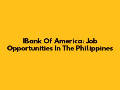 IBank Of America: Job Opportunities In The Philippines