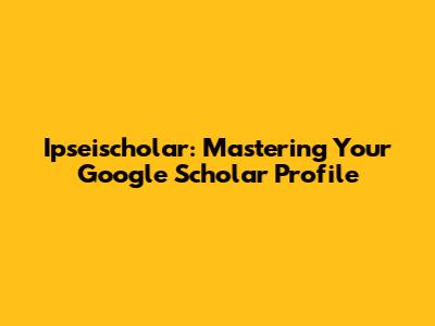 Ipseischolar: Mastering Your Google Scholar Profile