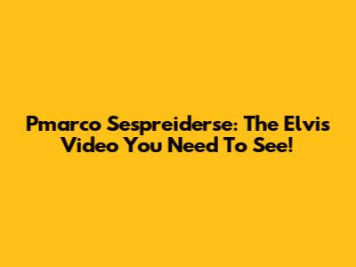 Pmarco Sespreiderse: The Elvis Video You Need To See!