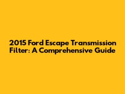 2015 Ford Escape Transmission Filter: A Comprehensive Guide