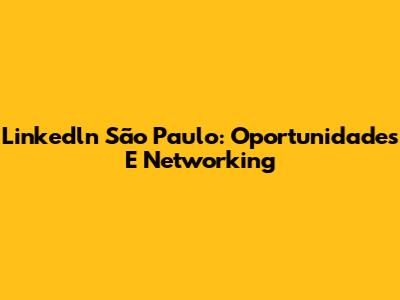 Linkedln São Paulo: Oportunidades E Networking