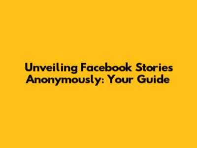 Unveiling Facebook Stories Anonymously: Your Guide
