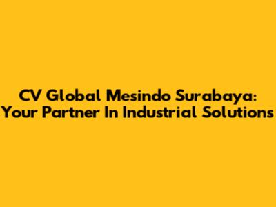CV Global Mesindo Surabaya: Your Partner In Industrial Solutions