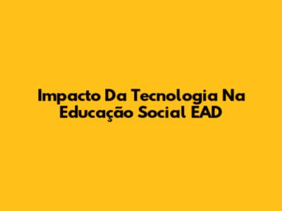 Impacto Da Tecnologia Na Educação Social EAD