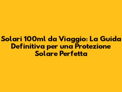 Come Scegliere il Solare 100ml da Viaggio Perfetto