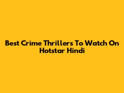 Best Crime Thrillers To Watch On Hotstar Hindi