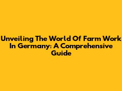 Unveiling The World Of Farm Work In Germany: A Comprehensive Guide