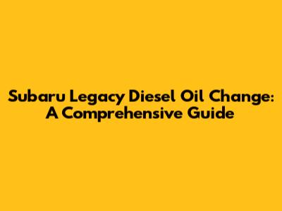 By following these tips and tricks, you can make the oil change process even easier and more efficient. Remember, regular maintenance is key to keeping your Subaru Legacy Diesel running smoothly and reliably for years to come.