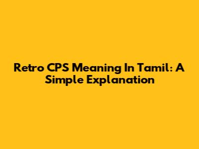 Retro CPS Meaning In Tamil: A Simple Explanation