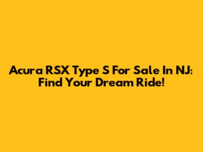 Acura RSX Type S For Sale In NJ: Find Your Dream Ride!