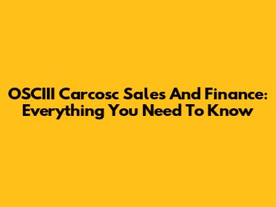 OSCIII Carcosc Sales And Finance: Everything You Need To Know