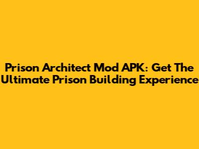 Prison Architect Mod APK: Get The Ultimate Prison Building Experience