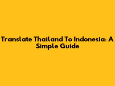 Translate Thailand To Indonesia: A Simple Guide