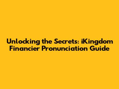 Hey everyone! Ever stumbled upon the term "iKingdom Financier" and found yourself tongue-tied, wondering how to pronounce it correctly? Well, you're not alone! The world of finance can be a bit of a maze, and the jargon can sometimes feel like a secret code. But don't worry, guys, we're going to break it down. In this guide, we'll dive deep into the correct pronunciation of "iKingdom Financier," explore what it means, and maybe even touch on some related financial concepts to make you sound like a pro. Get ready to impress your friends, colleagues, and maybe even your financial advisor! This article is your go-to resource for mastering the pronunciation and understanding the context of "iKingdom Financier."