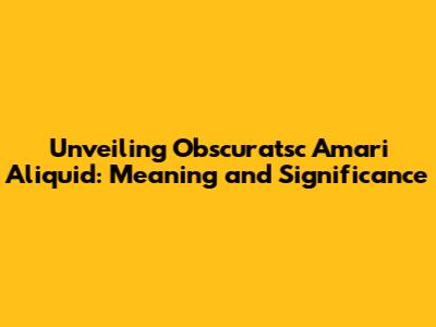 Why Does 'Obscuratsc Amari Aliquid' Still Matter? Its Relevance Today