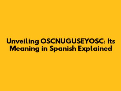 Hey guys! Ever stumbled upon a phrase and thought, "What in the world does that mean?" Well, that's the feeling many get when they encounter OSCNUGUSEYOSC, especially when trying to understand its meaning in Spanish. This seemingly random string of letters actually holds a fascinating story. In this article, we'll dive deep into OSCNUGUSEYOSC's potential meaning in Spanish, exploring its origins and context. So, buckle up; we're about to embark on a linguistic adventure!
