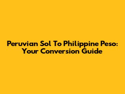 Peruvian Sol To Philippine Peso: Your Conversion Guide
