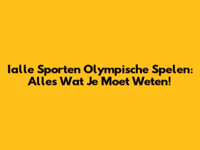 Ialle Sporten Olympische Spelen: Alles Wat Je Moet Weten!